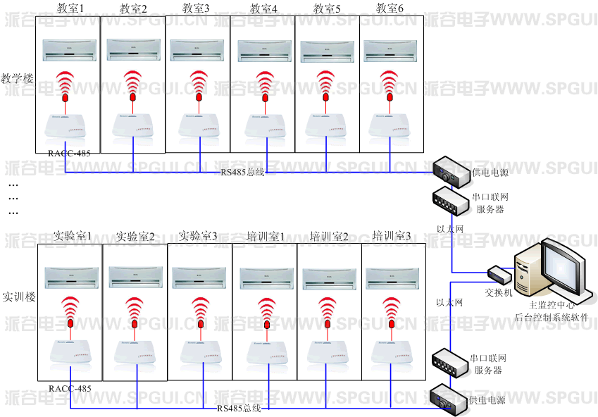 | 供電電源 | 為各個(gè)RS485空調(diào)遠(yuǎn)程控制器提供電源,保證工作用電。 |