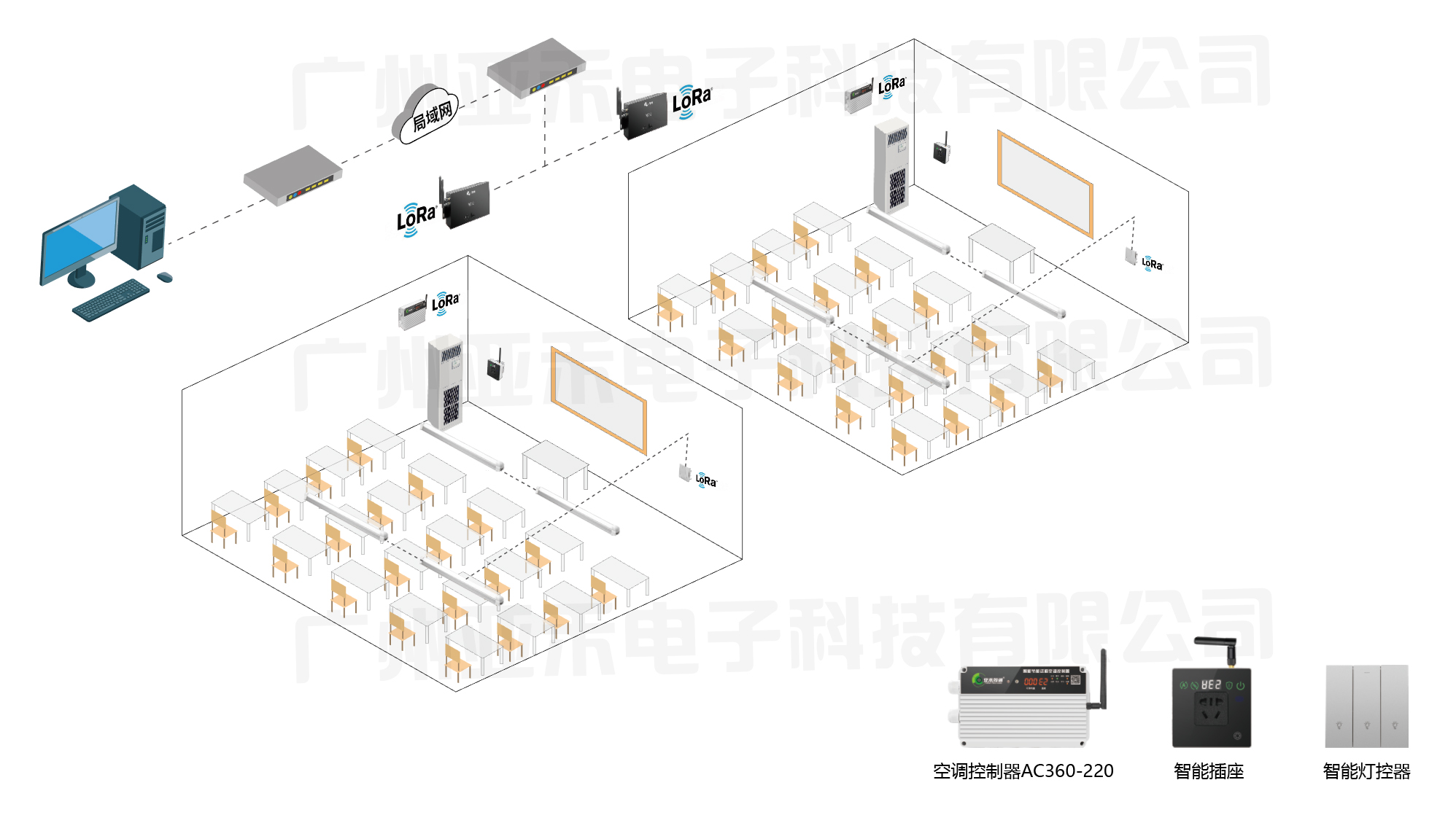 空調(diào)控制器:用于監(jiān)測(cè)教室內(nèi)的溫度、濕度、光照等環(huán)境參數(shù),并將數(shù)據(jù)傳輸?shù)街骺刂破鳌?/span>