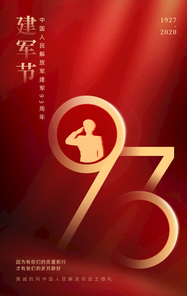今天,八一建軍節(jié),中國(guó)人民解放軍建軍93周年。他們是英雄的人民軍隊(duì),他們誓死不退,護(hù)佑大家的平安,即使時(shí)光荏苒當(dāng)硝煙不再、戰(zhàn)爭(zhēng)遠(yuǎn)去他們依舊昂然站立在我們身后林海雪原、戈壁險(xiǎn)灘他們用忠誠(chéng)保衛(wèi)家國(guó)邊關(guān)換來(lái)萬(wàn)家燈火、國(guó)泰民安為我們守護(hù)歲月靜好給我們滿(mǎn)滿(mǎn)的安全感。