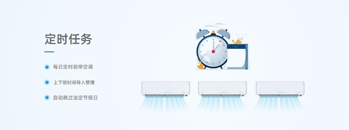 在策略配置方面,技術(shù)團(tuán)隊(duì)結(jié)合法院工作作息制定了差異化的控制方案:工作日按照庭審排期設(shè)置空調(diào)提前開(kāi)機(jī)時(shí)間,確保開(kāi)庭前室內(nèi)溫度達(dá)到標(biāo)準(zhǔn);午休時(shí)段自動(dòng)將非審判區(qū)域空調(diào)調(diào)至節(jié)能模式;下班后除值班室等必要區(qū)域外,通過(guò)分體空調(diào)智能控制器 AC360的強(qiáng)制電源控制模塊切斷空調(diào)電源;周末及節(jié)假日僅保留檔案室溫濕度保障設(shè)備運(yùn)行。這些策略通過(guò)平臺(tái)預(yù)設(shè)后,可自動(dòng)循環(huán)執(zhí)行,實(shí)現(xiàn) "無(wú)人值守" 的智能化管理。針對(duì)檔案室等敏感區(qū)域,額外配置外掛溫度傳感器,實(shí)現(xiàn)環(huán)境參數(shù)的精準(zhǔn)采集與調(diào)控。